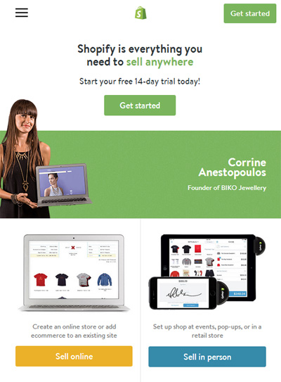 我們發(fā)現(xiàn),Shopify 并沒(méi)有像 Amazon 一樣采用復(fù)雜的頁(yè)面布局,更沒(méi)有放置太多的內(nèi)容在首頁(yè),這使他們可以輕而易舉地實(shí)現(xiàn)響應(yīng)式布局。簡(jiǎn)潔的網(wǎng)站設(shè)計(jì)可以讓訪(fǎng)客以最快的速度找到自己想要的東西。